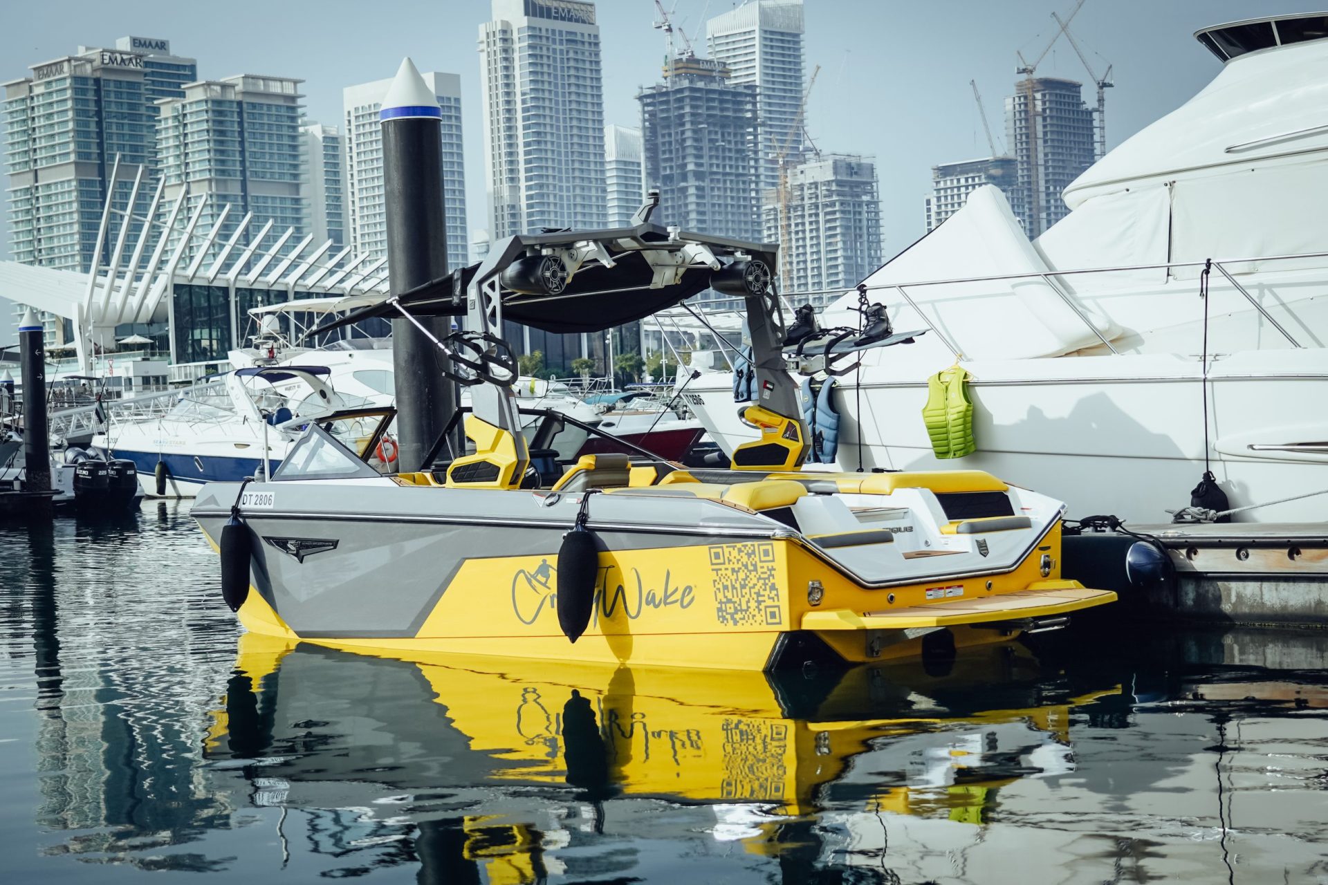 Wake Surfing for 30 minutes in Dubai Marina. (1-2) People.